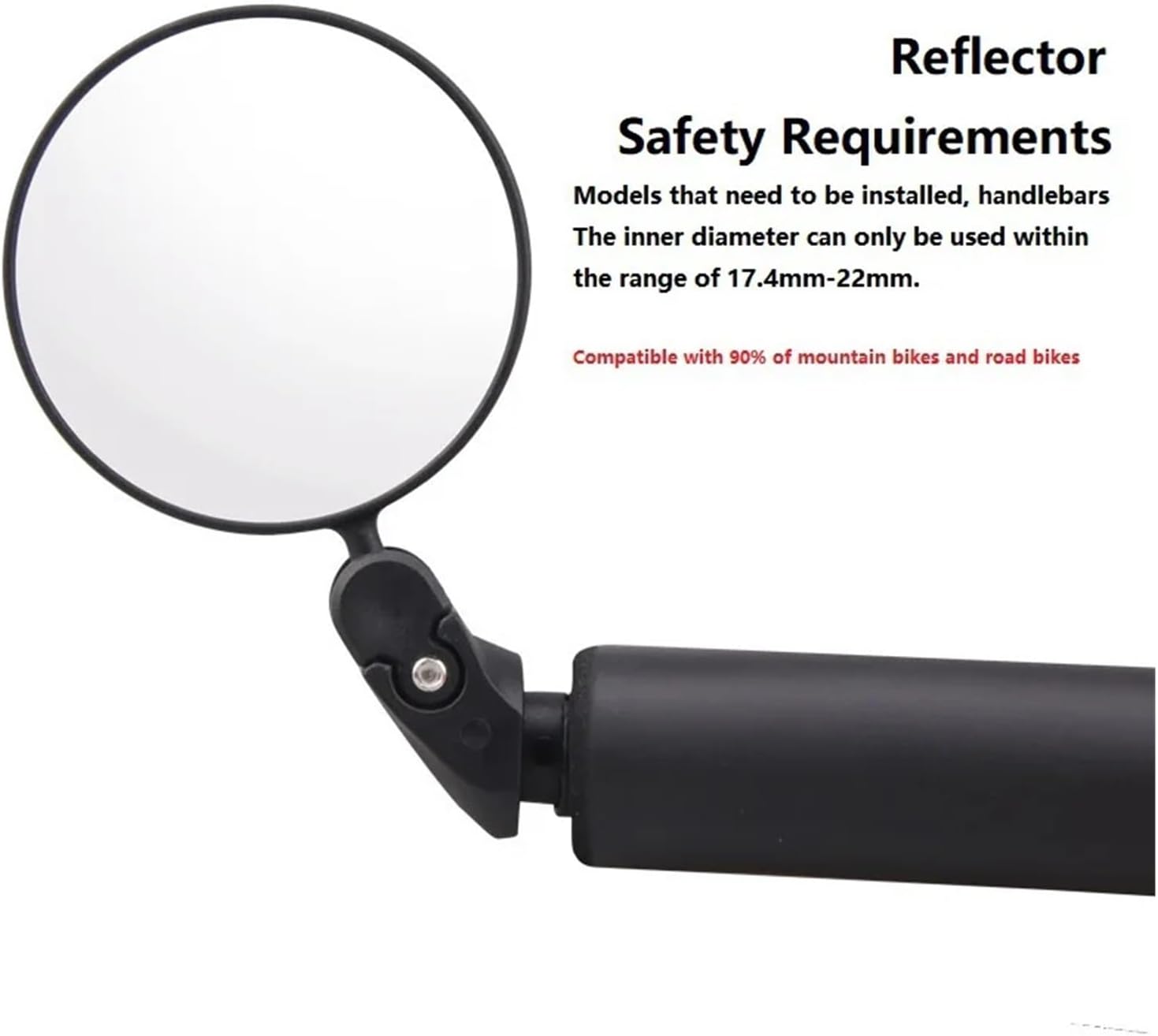 Practicality: The motorcycle Handlebar Mirror stands out for its universal compatibility. this mirror aligns with your diverse riding needs. This mirror for enhanced style on the roadThis bicycle rearview mirror adopts a wide-angle convex mirror design, which provides a wide field of view and significantly improves visibility. Its unique 3D 360 degree adjustment axis allows for free angle adjustment, ensuring no blind spots. Easy and convenient installation, simply fix it to the handlebar with screws with an inner diameter of 17.4mm~22mm. The product is made of durable acrylic material, suitable for long-term use.