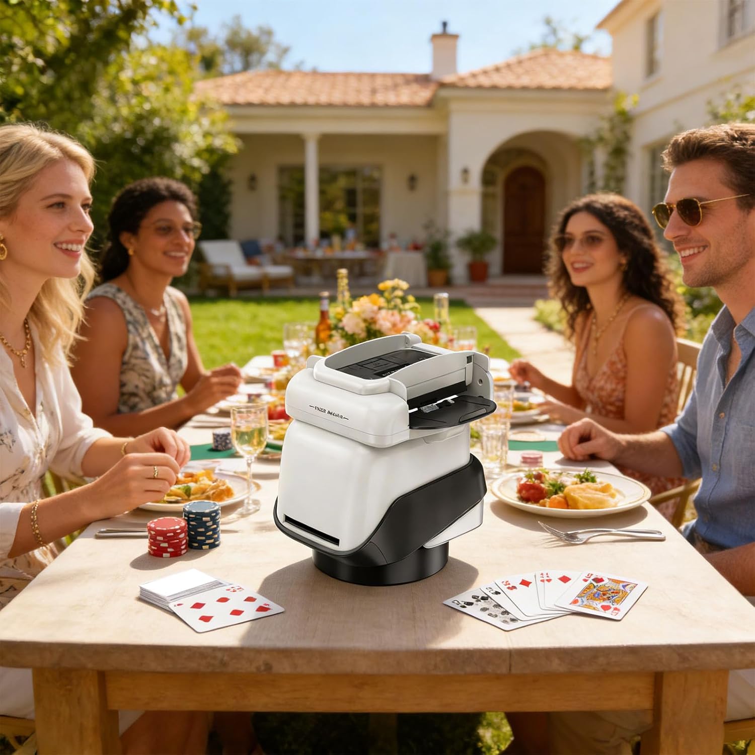High Capacity Automatic Card Shufflers for 4 Decks Features 360 Rotation Technology Built in Battery for Gaming Features: This advanced automatic card shufflers efficiently shuffles four decks of playing cards in seconds using smart technology, solving the time consuming issues of manual shuffling and ensuring quick, reliability for seamlessly gaming features a 360 degree card rotation, a built in rechargeable battery for extended use without frequent charging, and durability construction for enhances resistance and longevity, this shuffling machine robust functionality and easy handling Designed for all user groups, including seniors and, the intuitively interfaces allows operations, making it accessible for beginner and experienced players alike in various gaming environments Ideal for scenarios such as family gatherings, rooms, outdoor event, or professional tournaments, this card shufflers provides consistent even in power settings, enhancing gameplay efficiency Elevating your card games with this dependable shufflers that promotes equitable play, reduces manual effort, and supports multiple deck capacities, perfect for entertainment enthusiasts seeking a simple Specifications: : 19x17.6x16.6cm / 7.48×6.93×6.54in Component: electronic components Package Includes: 1pc Smarted Automatic Card Shufflers Note: 1.Please allow 1-2cm errors due to manual measurement, making sure that you will not mind before order 2.Due to the differences between different monitors, the picture may not reflect the actual color