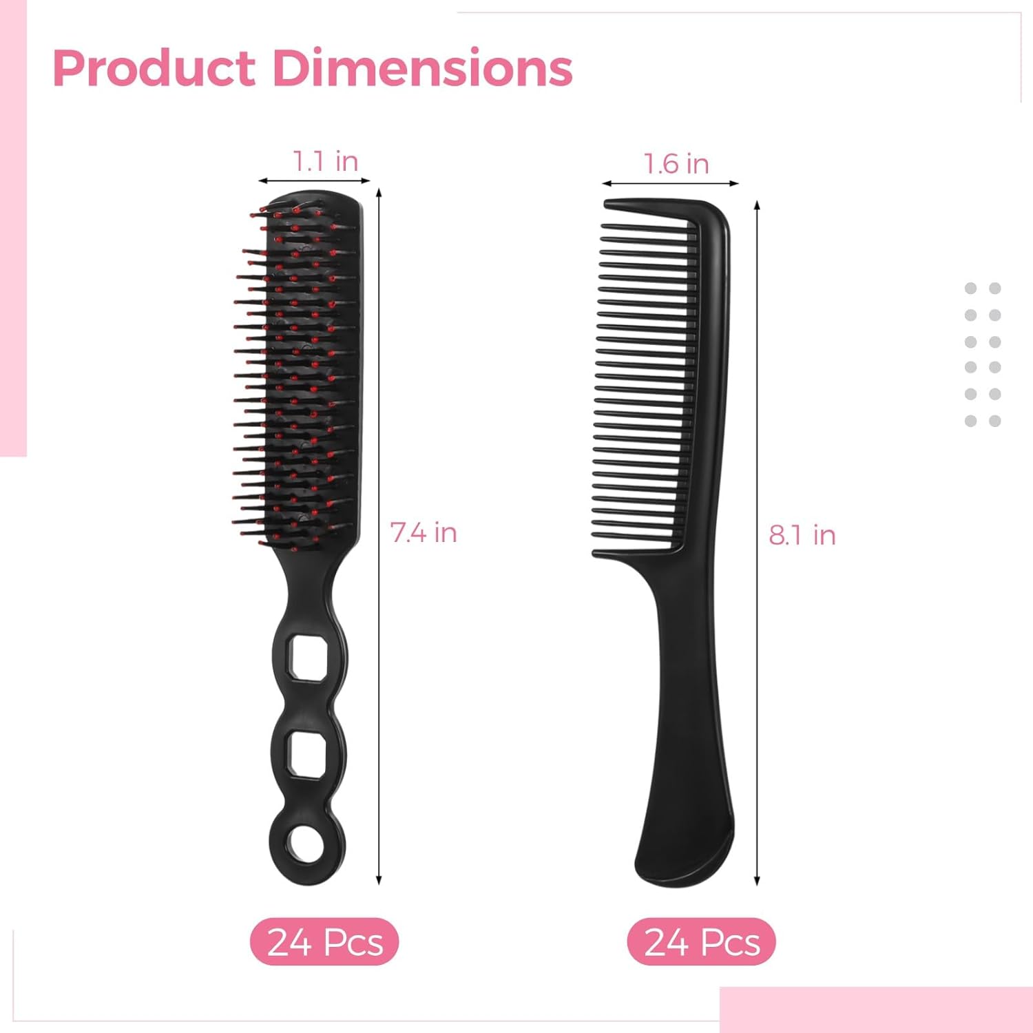 Color:black Material:PP plastic Product Size: 1.6×8.1in (comb); 1.1×7.4in (brush) Package Includes:24×brush, 24×comb Note: - Please refer to the measurement. Tiny measuring error is allowable in normal range. - There might be a little color difference due to the monitor, camera or other factors, please refer to the physical item.